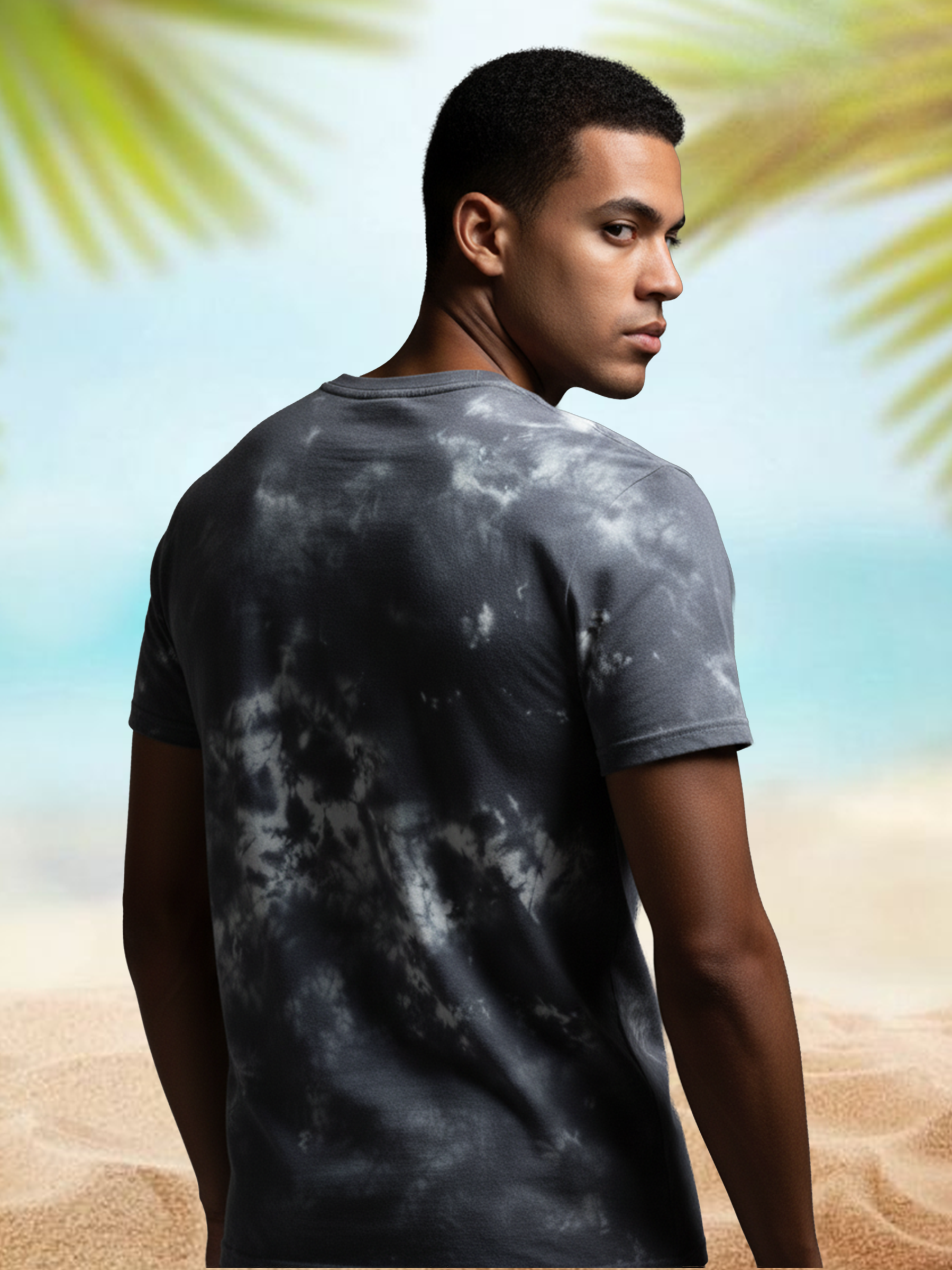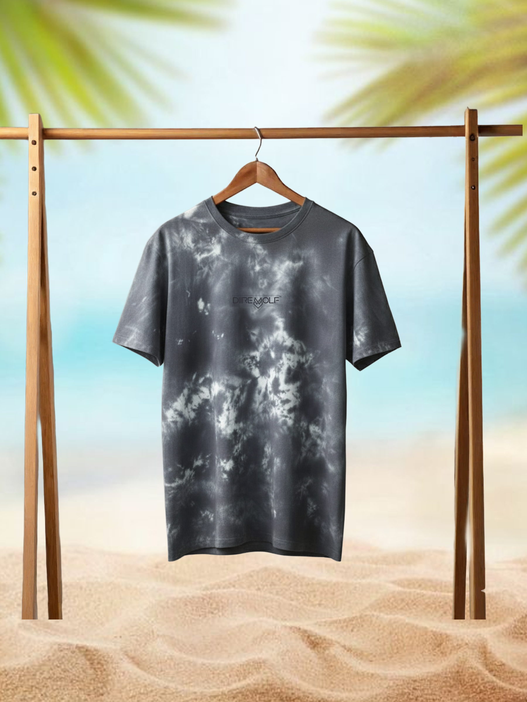 The Direwolf Tie-Dye T-Shirt, a unique piece that blends comfort with a fierce, independent spirit. The custom grey and white smoke-and-shadow tie-dye pattern ensures that no two shirts are exactly alike, giving you a truly original look.